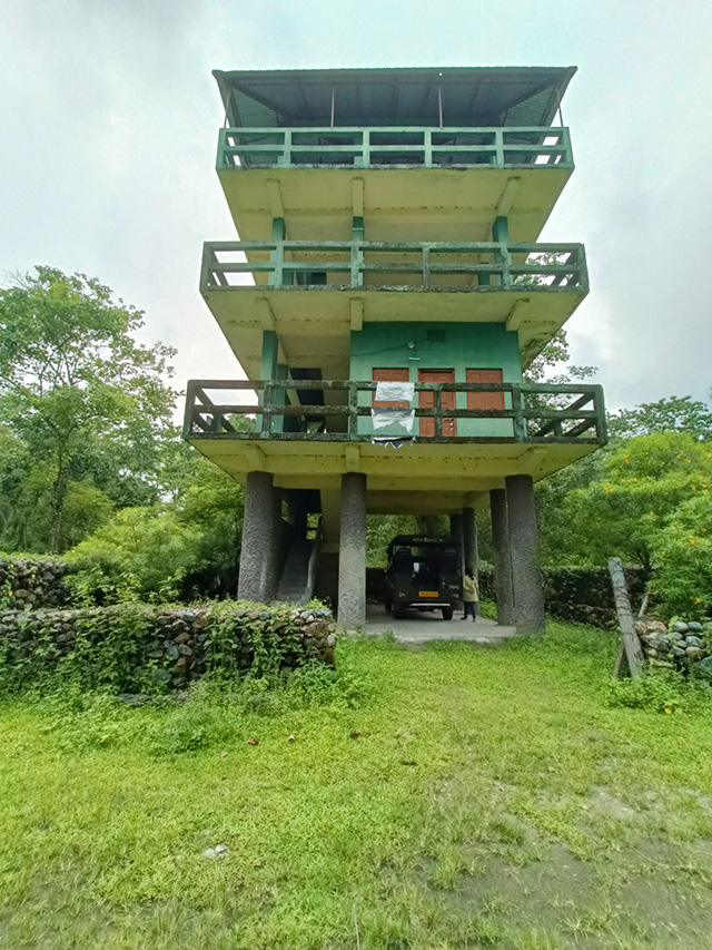 এই রিভারবেডে বেশ কিছুক্ষন সময় কাটালাম। দেখতে পেলাম জঙ্গলের মধ্যে একটা প্রটেকশন টাওয়ার। এটি এক ধরণের ছাউনি, বনদফতরের কর্মীরা এখানে থেকে চোরাশিকারীদের গতিবিধির ওপর নজর রাখেন। বন আর বন্যপ্রাণ কে যাতে সুরক্ষা দেয়া যায়, তারই একটা প্রচেষ্টা। জয়ন্তী রিভারবেড থেকে এবার আমাদের গাড়ি ফিরে চললো হোমস্টের দিকে। এই রেঞ্জের সাফারি আমাদের শেষ হলো। তবুও চারিদিকে দেখতে লাগলাম যদি কোনো বন্যপ্রাণের আকস্মিক আগমন ঘটে !