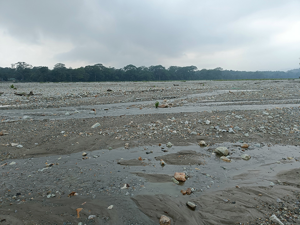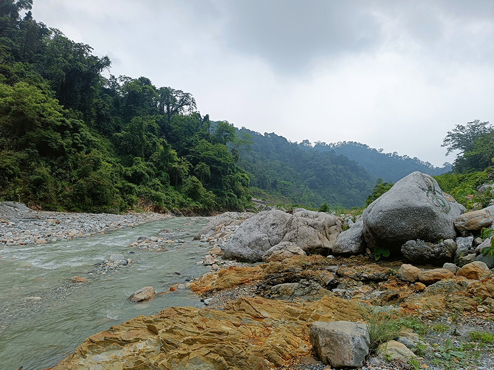 এতক্ষণে আমরা পৌঁছে গেছি জয়ন্তী নদীর কাছে। গাড়ি আমাদের নামিয়ে দিলো রিভারবেডে। এই রিভারবেড অনেক প্রশস্ত। দূরে দেখা যায় সারি সারি পাহাড় , সিঁড়ির ধাপের মতো উঠে গেছে। নদীর একদিকে বক্সা ন্যাশনাল পার্ক , আরেকদিকে সারি সারি পাহাড় ও জঙ্গল । অনবদ্য ভূদৃশ্য। এরম চমৎকারী ছবি শুধুমাত্র প্রকৃতির পক্ষেই তুলি দিয়েই আঁকা সম্ভব। বাদলবাবু বললেন – ওই পাহাড় গুলোর আড়ালে লুকিয়ে রয়েছে ভারত – ভুটান সীমান্ত। ভাবতে অবাক লাগে , যেখানে প্রকৃতি এই ভূখণ্ডকে সাজিয়ে তুলেছে পাহাড় আর বনাঞ্চল দিয়ে , সেখানে মানুষ হয়ে সীমান্ত টেনে এই ভূখণ্ডকে ভাগ করার অধিকার আমাদের কে দিয়েছে ?