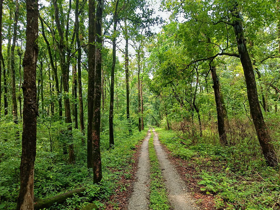 শুরু হলো সাফারি। সাফারির গাড়ির সামনে একটি কেবিন। সেখানে ড্রাইভার এর পাশে একজনের বসার ব্যবস্থা। স্থানীয় একজন গাড়ি চালাবেন , আর তাঁর পাশে বসলেন বাদলবাবু। গাড়ির পেছনের দিকের নির্মাণ সাফারির কথা মাথায় রেখে করা হয়েছে। এই ধরনের গাড়িগুলিকে ক্যান্টর বলা হয়। এখানে দুটি সারিতে তিনটি করে সিট্। প্রত্যেকটি সিট্ থেকেই জঙ্গল ভালোভাবে উপভোগ করা যায়। পেছনের এই বসার জায়গায় ছাউনি দেয়া রয়েছে। এই ছাউনি খোলাও যায়। ড্রাইভারের কেবিন আর এই বসার জায়গার মাঝে ছোট্ট জায়গা দিয়ে সাফারির মজা দাঁড়িয়ে দাঁড়িয়ে উপভোগ করা যায়। সেখানে একটি লোহার রড রয়েছে , সেটা ধরে দাঁড়ালে গাড়ি নড়লেও , ব্যালেন্স রাখা যায়। ছবি তোলার জন্যে এটি আদর্শ জায়গা। সাফারির গাড়ি আমাদের নিয়ে সেনাছাউনির পাশ দিয়ে জয়ন্তী রেঞ্জে প্রবেশ করলো। মাটির রাস্তা সোজা চলে গেছে গভীর জঙ্গলে। গাড়ির টায়ার রাস্তায় যে পথে এগিয়েছে , রাস্তার সে অংশ ছাড়া বাকি অংশে ঘাসের আবরণ। এই জিনিস শুধুমাত্র জঙ্গল সাফারিতে দেখা যায়। কিছুক্ষন এইপথে চলার পরই অস্পষ্ট হয়ে এলো জনপদের কোলাহল। প্রবেশ করলাম এমন এক জগতে যেখানে মানুষ, একজন আগন্তুক ছাড়া কিছুই না।