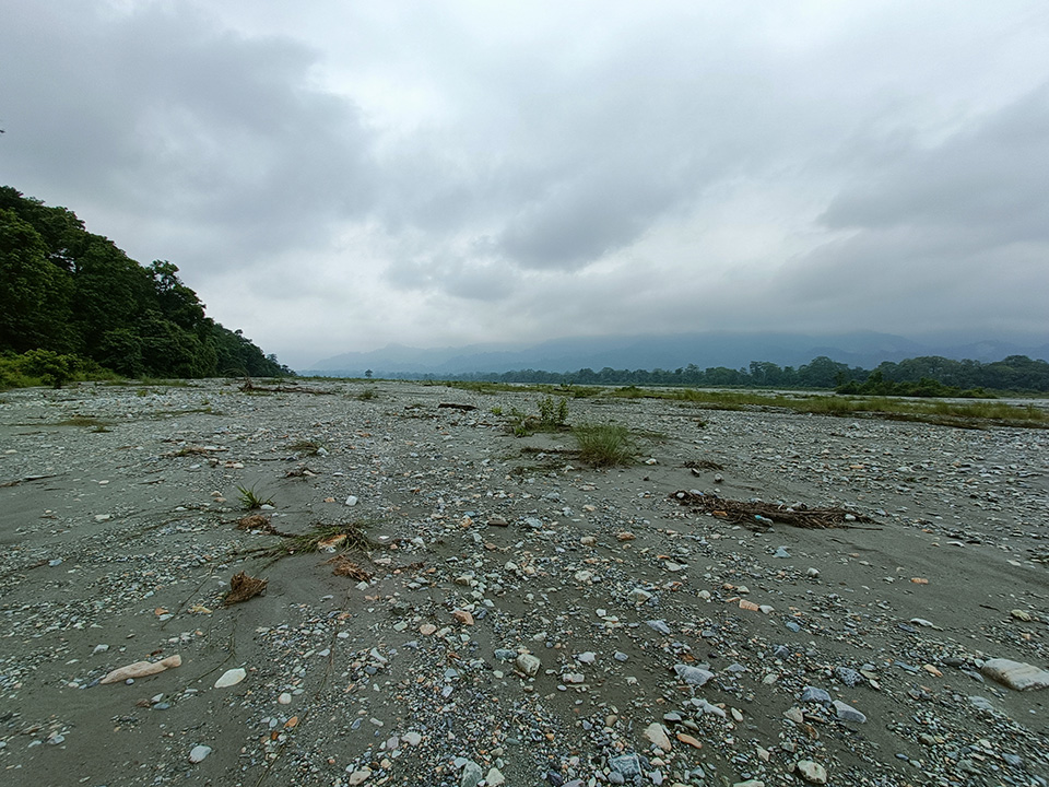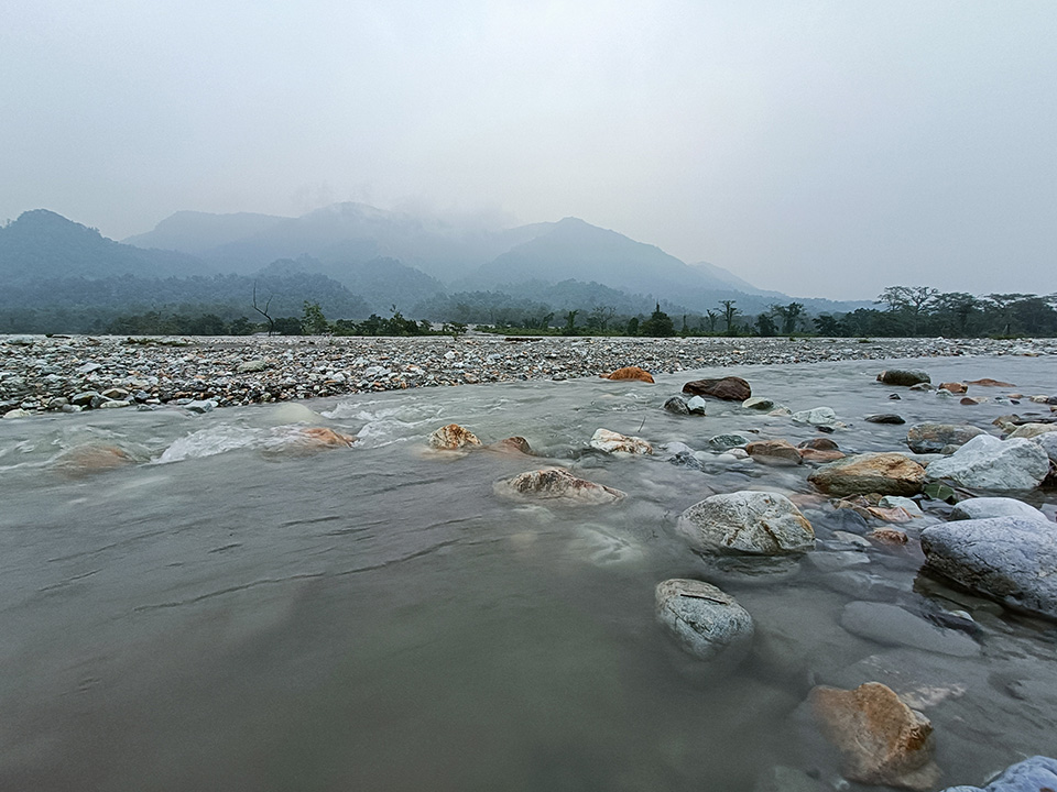 জঙ্গলের আরো গভীরে প্রবেশ করতে লাগলাম। মনে হতে লাগলো এই সাফারি যেন শেষ না হয়। ভুলে গেলাম ব্রেকফাস্ট এর কথা। উঁচুনীচু রাস্তা পেরিয়ে আমরা পৌঁছে গেলাম বালানদীর কাছে। আমি তখন দাঁড়িয়ে দাঁড়িয়ে সাফারি উপভোগ করছি। বাদলবাবু বললেন – স্যার, সাবধানে দাঁড়াবেন , নইলে বসে পড়ুন। এবড়োখেবড়ো রাস্তা ধরে দুলতে দুলতে গাড়ি নেমে গেলো বালা রিভারবেডে। রিভারবেড এর রং নুড়ি পাথরের কারণে সাদা হয়ে রয়েছে। দুধারে সবুজ বনাঞ্চল। এ এক অসাধারণ ল্যান্ডস্কেপ। মাঝে মাঝে বন্যপ্রাণীরা নদীর একধারের জঙ্গল থেকে আরেকধারে যায়। ঘন্টাখানেক আগেই, এই বালা রিভারব্রীজ পেরিয়ে পৌঁছেছিলাম জয়ন্তী। এখন রিভারবেডে দাঁড়িয়ে জঙ্গল দেখতে পাচ্ছি। আশায় আশায় কিছুক্ষন কাটালাম রিভারবেডে। বাদলবাবু দূরের পাহাড়গুলো দেখালেন। দৃশ্যটি ভারী সুন্দর। এই জায়গায় নদীর প্রশস্তি বিশাল। বাদলবাবু এদিক ওদিক চোখ রাখলেন, যদি কোনো বন্যপ্রাণ দেখা যায়। কিছুক্ষণ অপেক্ষা করে, তারপর আবার প্রবেশ করলাম বক্সার অন্দরমহলে। এবার আমরা যাবো জয়ন্তী রিভারবেড।