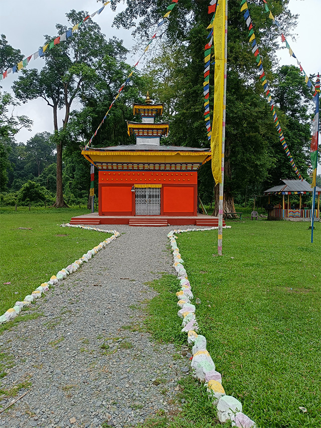 জয়ন্তী মোড়ে একটি ছোট্ট মন্দির আছে। সম্ভবত এই মোড়ে, দুর্ঘটনা এড়ানোর জন্যে করা। রয়েছে একটা পুরোনো ওয়াচটাওয়ার। খুব উঁচু নয় , তবে এটা থেকে এলাকার ওপর নজরদারি করা যায়। আমরা জয়ন্তী মোড় থেকে ডানদিকে বাঁক নিলাম। সেই রাস্তায় কিছুদূর এগোতেই প্রকৃতি নিজের রূপ পাল্টে ফেললো। এতক্ষন যেরকম ঘন বনানীর মধ্যে দিয়ে আসছিলাম , এখন দেখতে পেলাম সে বনানী আর নেই। স্বপনবাবু এখানে শুধুই প্ল্যান্টেশন দেখালেন। পথের দুধারে দেখতে পেলাম বেশ সুন্দর ছোটছোট কাঠের বাড়ি। বাড়িগুলোর বাইরে কাঠের সিঁড়িও রয়েছে। বাড়িগুলো কাঠের তৈরি অসংখ্য স্তম্ভের ওপর দাঁড়িয়ে। এগুলোকেই জঙ্গলে থাকার সেরা ঠিকানা হিসেবে ধরা হয়। অনেকে বলেন ফরেস্ট বাংলো। স্বপনবাবু জানালেন এইগুলি প্রত্যেকটিই হোমস্টে। যারা জয়ন্তীতে থাকেন না , তারা এইজায়গাতে থাকেন। বাগান দিয়ে সাজানো, বাঁশের তৈরী পাঁচিল দিয়ে ঘেরা হোমস্টে গুলো দেখলে , আমাদের মতো পর্যটকেরা থাকতে চাইবেই। এই ছোট জনপদ দিয়ে যত এগোতে লাগলাম , সুন্দর সুন্দর প্রাকৃতিক দৃশ্য চোখে পড়তে লাগলো। কিছুদূর এগিয়ে চোখে পড়লো বাচ্চাদের স্কুল , খেলার মাঠ এবং একটি ছোট্ট মনাস্ট্রি। আমি একটুও অবাক হলাম না। এই চত্বরে হয়তো বৌদ্ধধর্মাবলম্বী মানুষেরা থাকেন। আমার খটকা লাগলো অন্য জায়গায়।